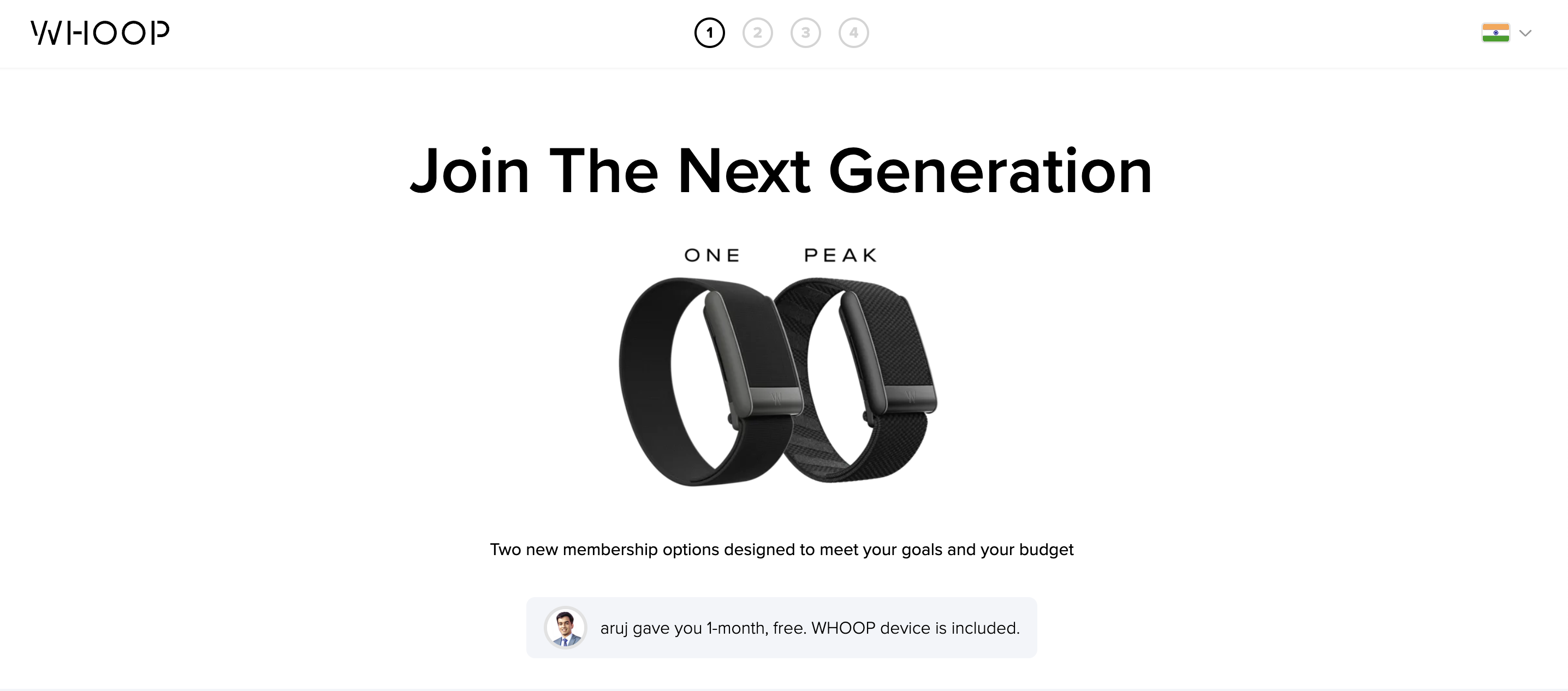 After clicking on the WHOOP button, you’ll be redirected to the official page. Make sure that you see the section where it says “aruj gave you one month free.” You’ll be getting a one-month discount through my link.